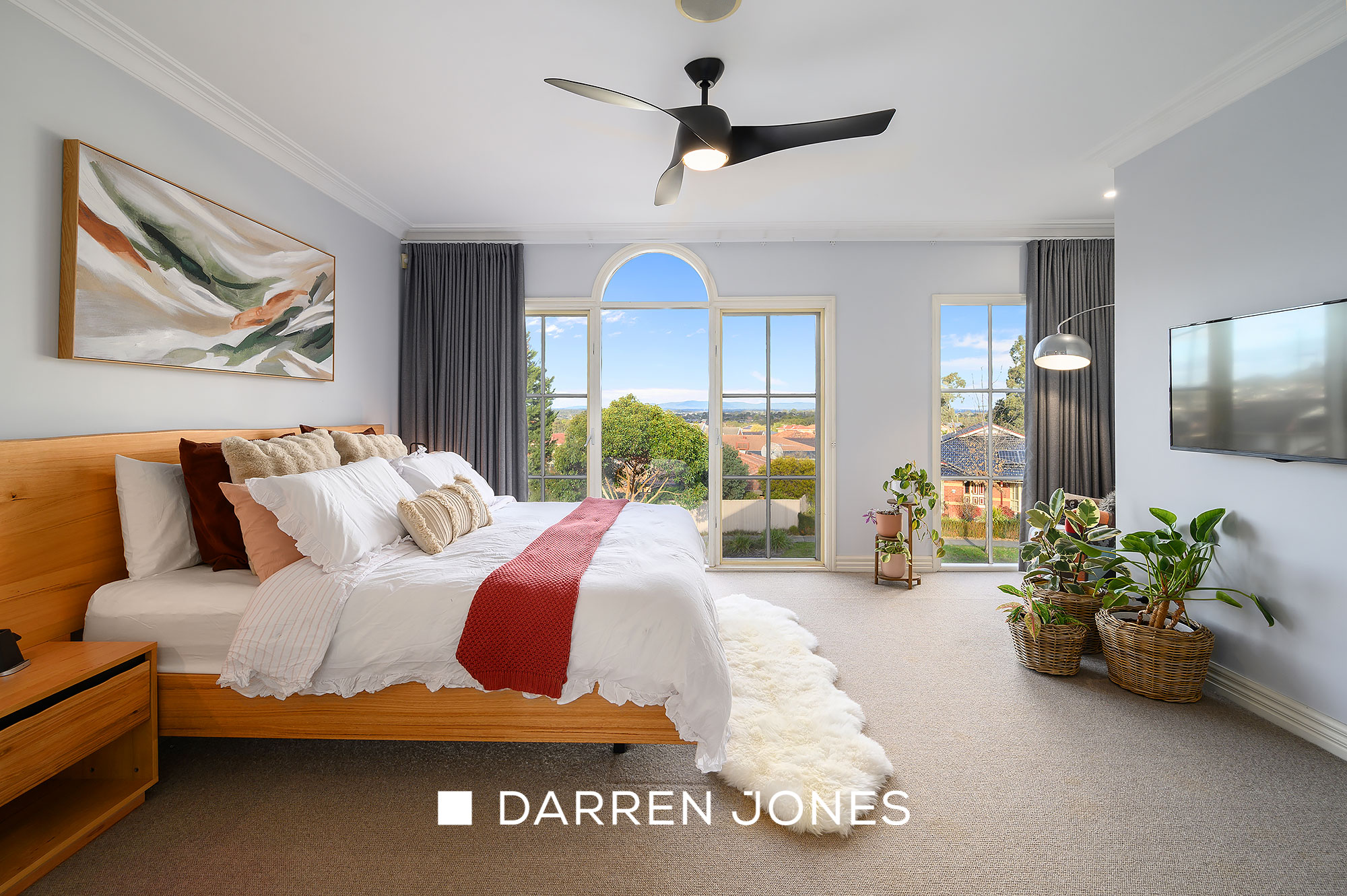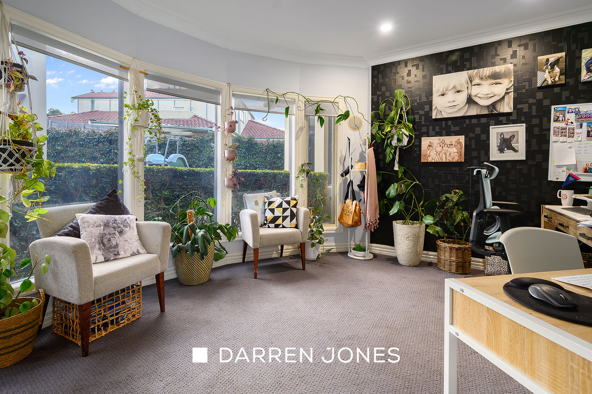 Accommodation options include a spacious main bedroom offering stunning views, a walk-in robe, and a stone detailed ensuite featuring a designer glass vanity and a frameless shower. It is complemented by three further bedrooms sharing a deluxe, dual-basin family bathroom. A large home office with an outlook to the pool provides a relaxing space for working from home or an excellent zoom-room