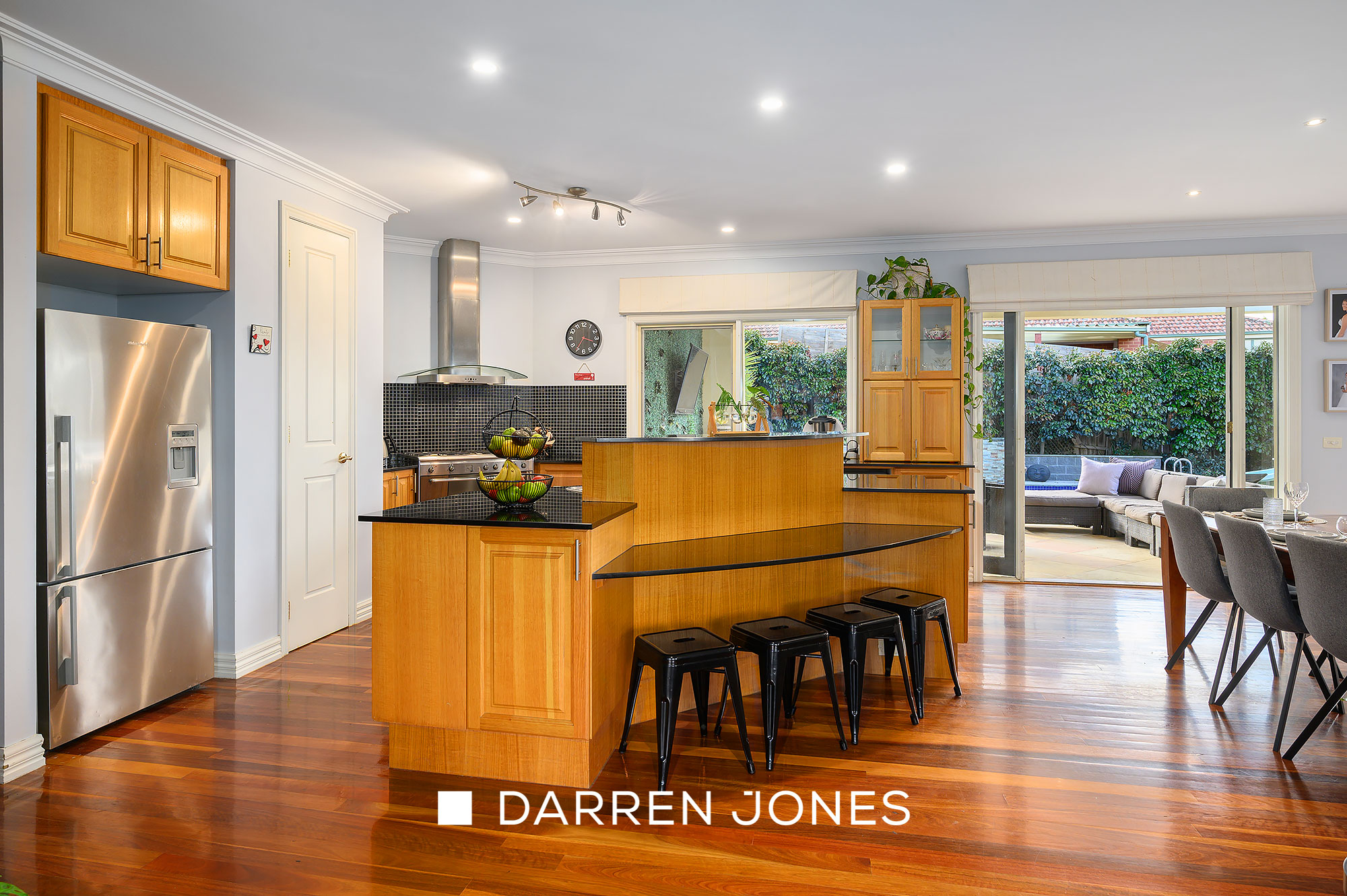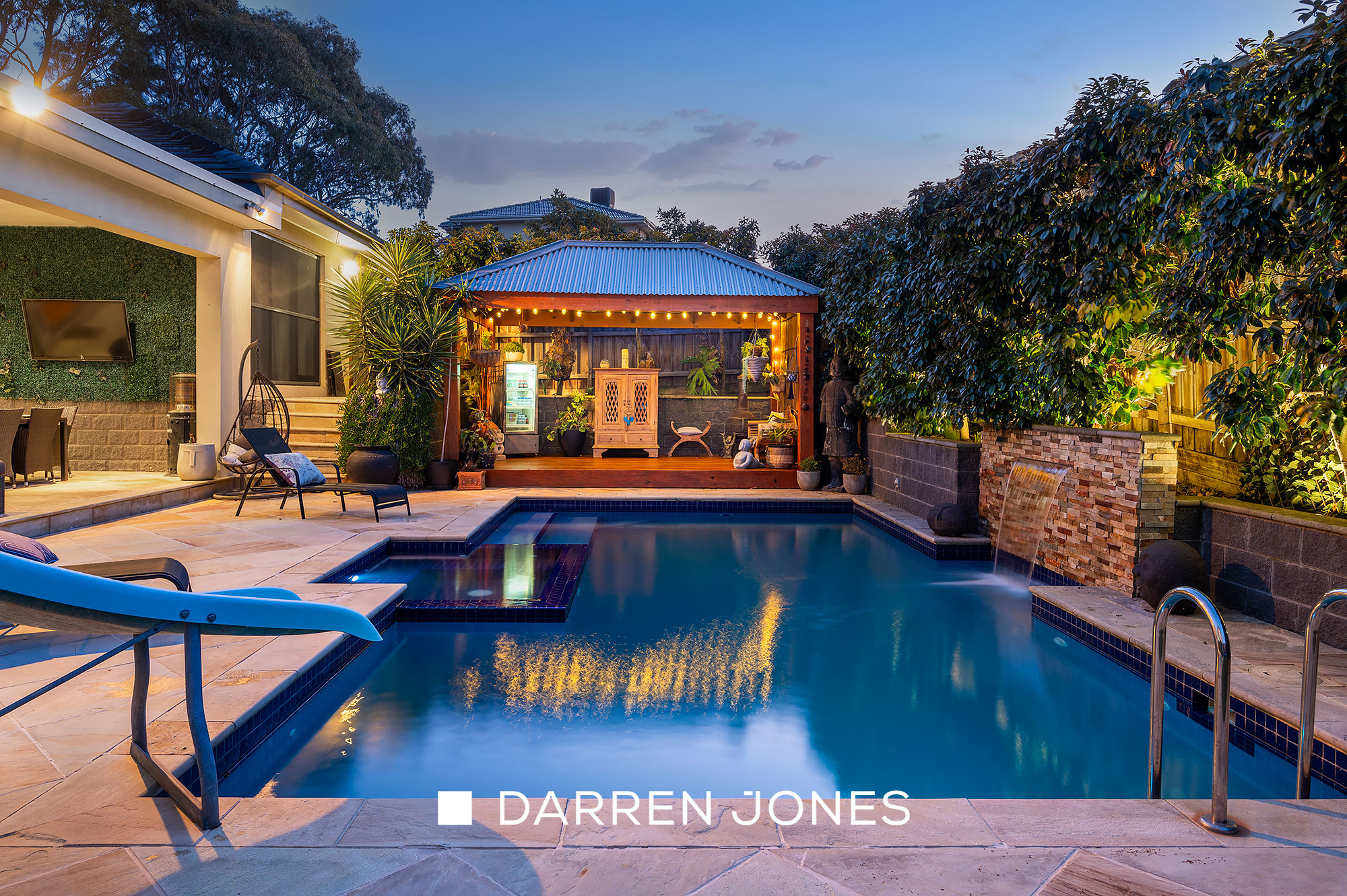 Featuring an outdoor kitchen (plumbed for water and gas) and complemented by a decked gazebo, the sandstone-paved alfresco area surrounds a sparkling heated pool and spa, delivering a sanctuary for summer living and entertaining.