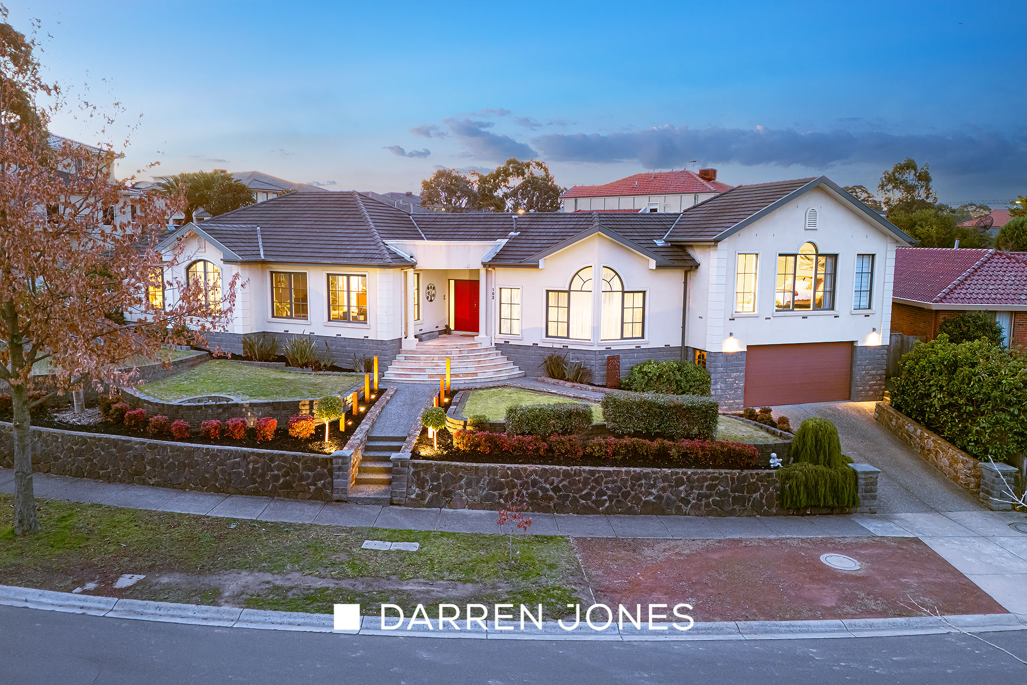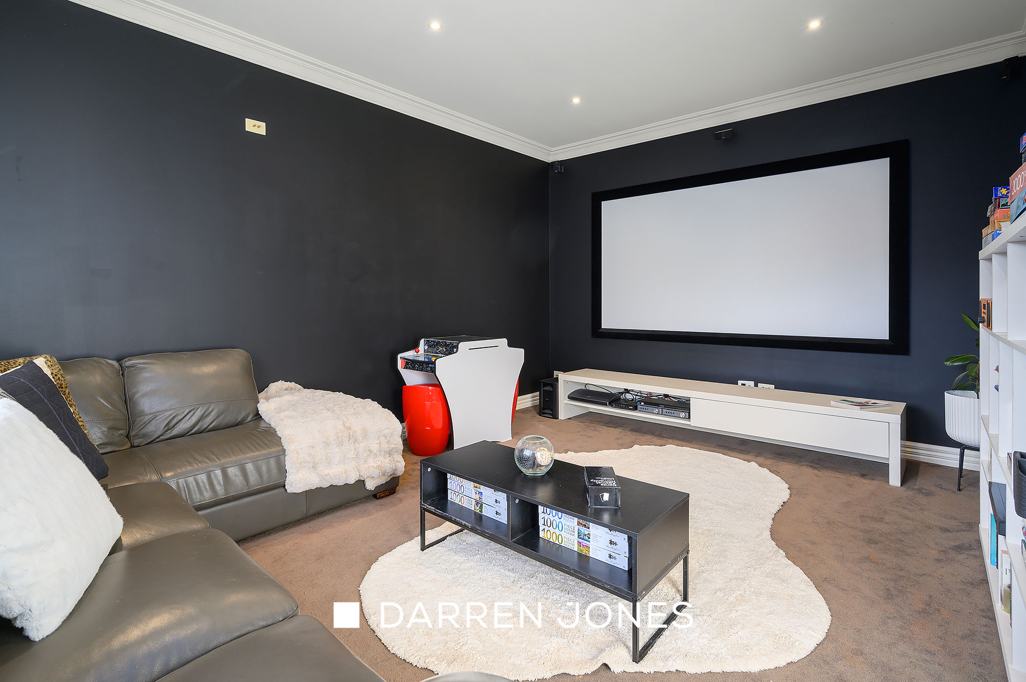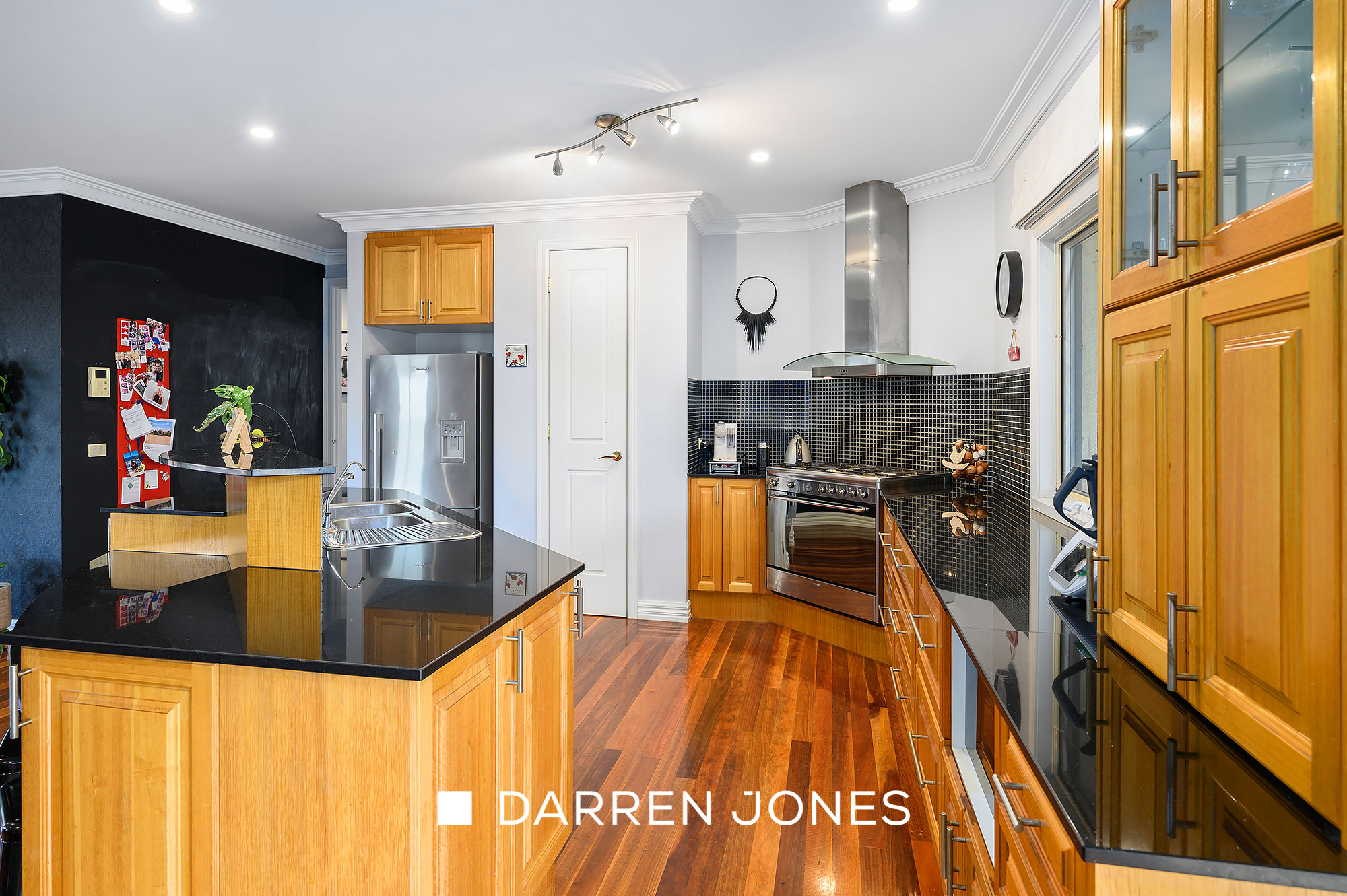Welcomed by a striking entry featuring glossy inlaid timber floors, the spacious interior unfurls to introduce an open plan living-meals anchored by a granite-topped, solid timber kitchen featuring a Smeg 900mm cooker, a formal lounge anchored by a gas log fire, a fitted theatre room, gym, and a rumpus room