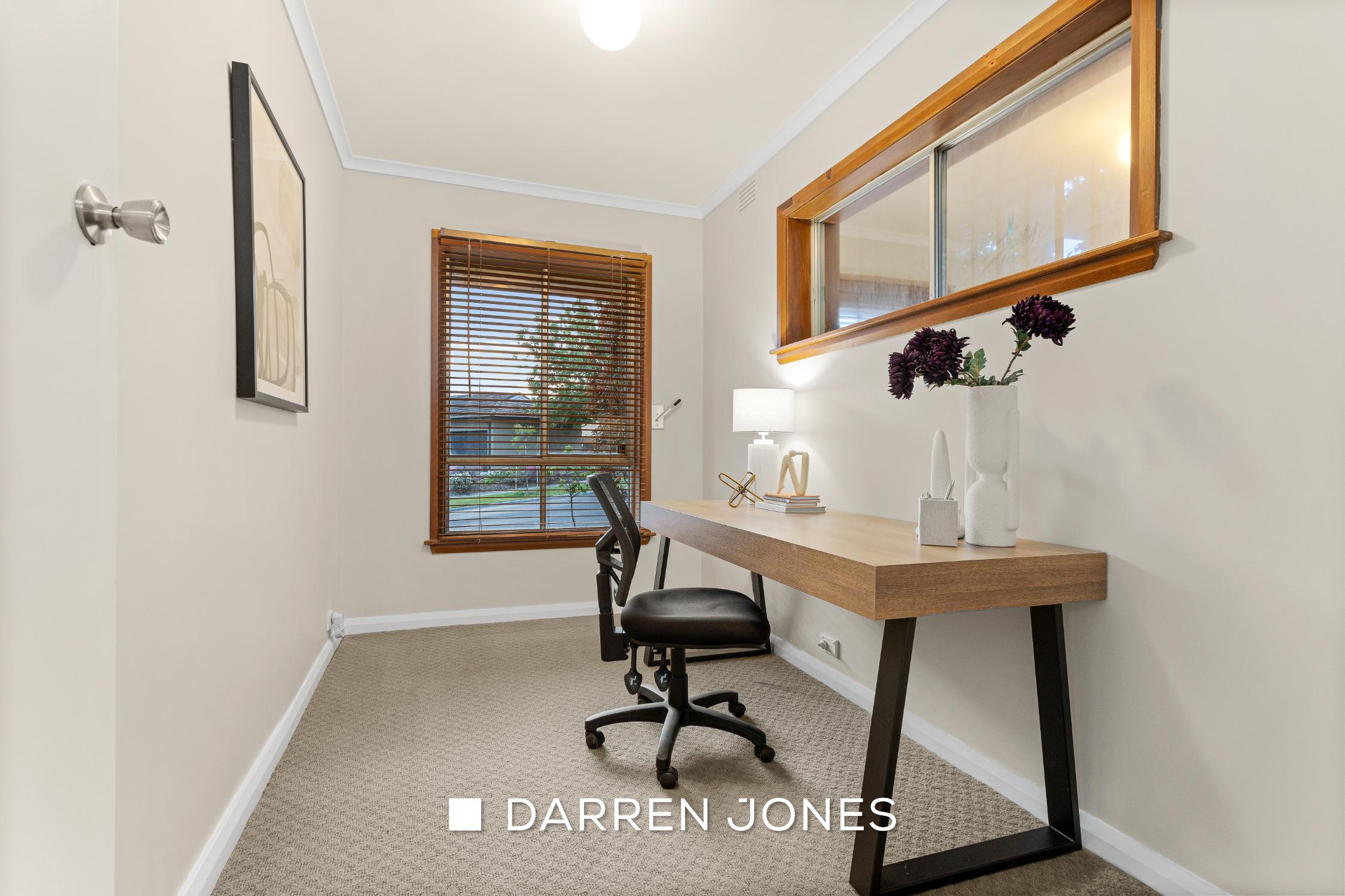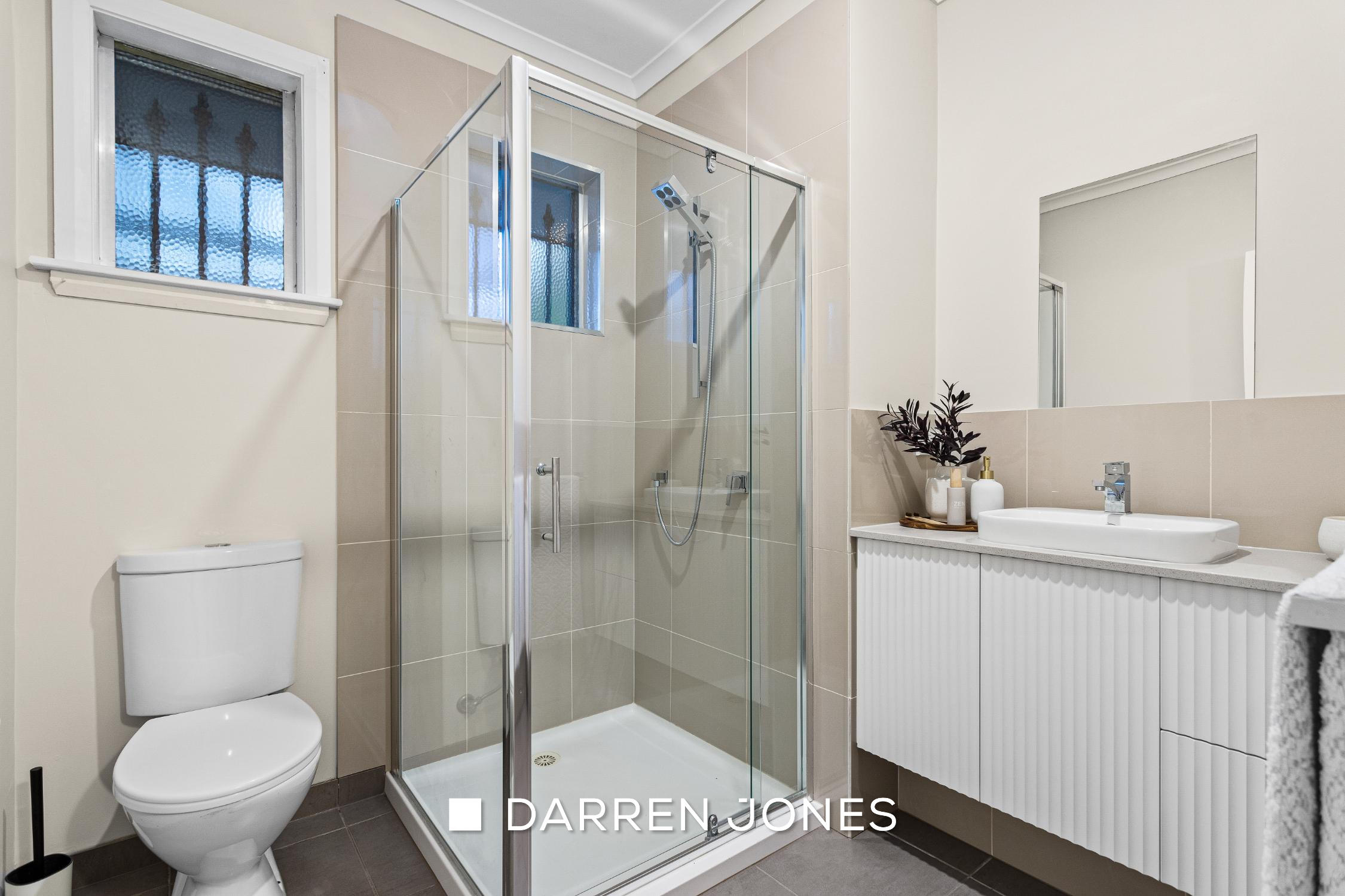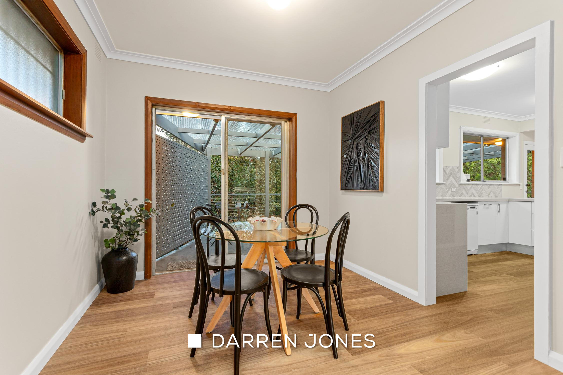 Perfectly presented and offering comfort, space, and outstanding convenience, this updated home delivers the ideal choice for first-home buyers and young families seeking a well-positioned property in a sought-after pocket. Footsteps to the bus stop, a short walk to schools, parks and Diamond Village and a relaxed stroll to Greensborough’s plaza, station and Main Street, this inviting three-bedroom, two-bathroom plus study home is neat, welcoming, and ready to enjoy. Fresh paint, just-laid hybrid timber flooring, a kitchen finished with stone bench tops and quality appliances, including an induction cooktop and pyrolytic oven, and a pair of stone-finished bathrooms lead a long list of enhancements that ensure move-in-ready living. A large living dining opening to an expansive, tree-top deck covered for year-round enjoyment, offers the perfect combination of free-flowing space for indoor-outdoor entertaining.