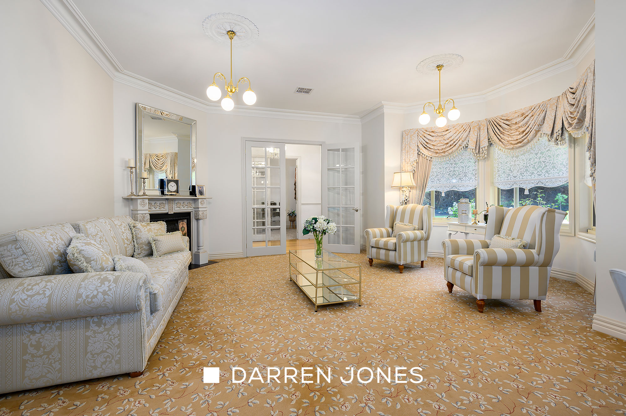 Block-mounted switches, a striking corbel archway, decorative roses, an ornate cornice to high ceilings, premium-quality carpet complementing window finishes, and glossy timber floors are charming enhancements to an interior that offers a main bedroom complete with a luxurious ensuite and three further bedrooms sharing an equally sumptuous family bathroom.