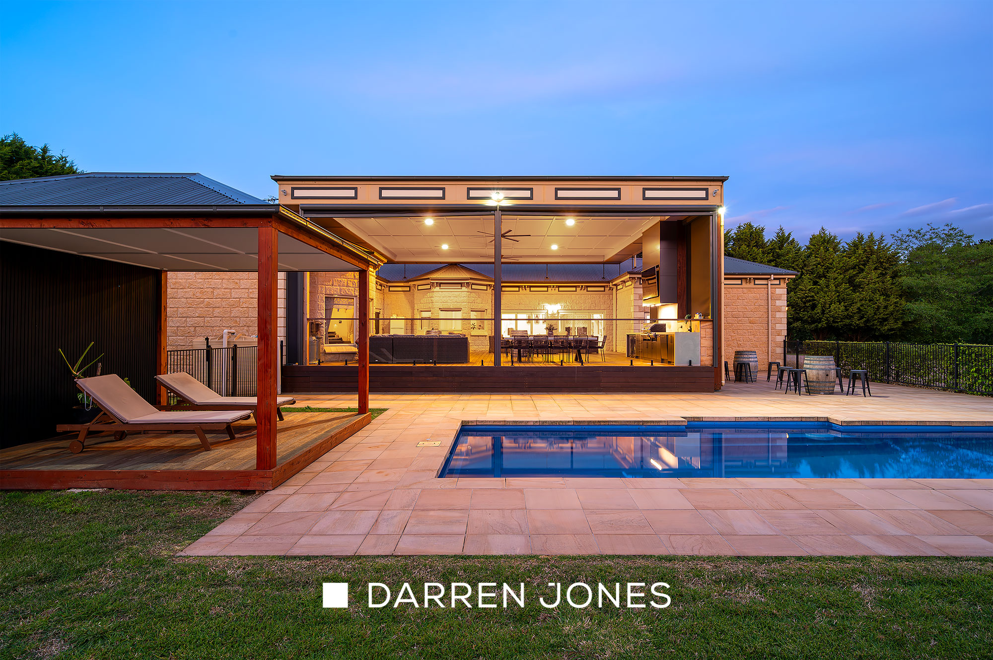 Complementing the luxury of the internal spaces is a magnificent outdoor entertainment area. Decked, covered, and featuring tracked blinds and ceiling fans for year-round use, it includes an outdoor kitchen finished in stone, complete with bar fridges and a dishwasher. Perfect for long afternoons that effortlessly roll into late nights with friends and family, it sits beside a heated pool in sandstone surrounds… another serene space to relax!