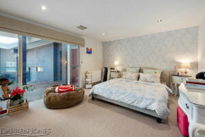 Cradled down a quiet hall, three bedrooms share a deluxe stone detailed family bathroom (complete with self-heating spa), a fitted study perfect for those reluctant to return to the office and a theatre room fitted with surround sound, ready for your own immersive Gold Class experience.