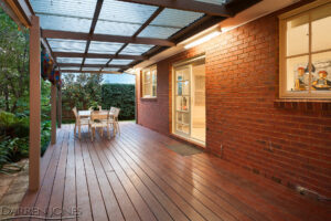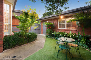 The deceptively spacious interior introduces a ground floor living-dining with open fire place, main bedroom with fitted walk-in robe and full ensuite, a second bedroom, and a generous open plan living area complimented by a stone finished kitchen with stainless steel appliances. Sliding doors take you out to a decked, undercover area. Against a backdrop of landscaped garden, this expansive, all-weather alfresco sanctuary links two separate gardens to create a relaxing outdoor haven.
