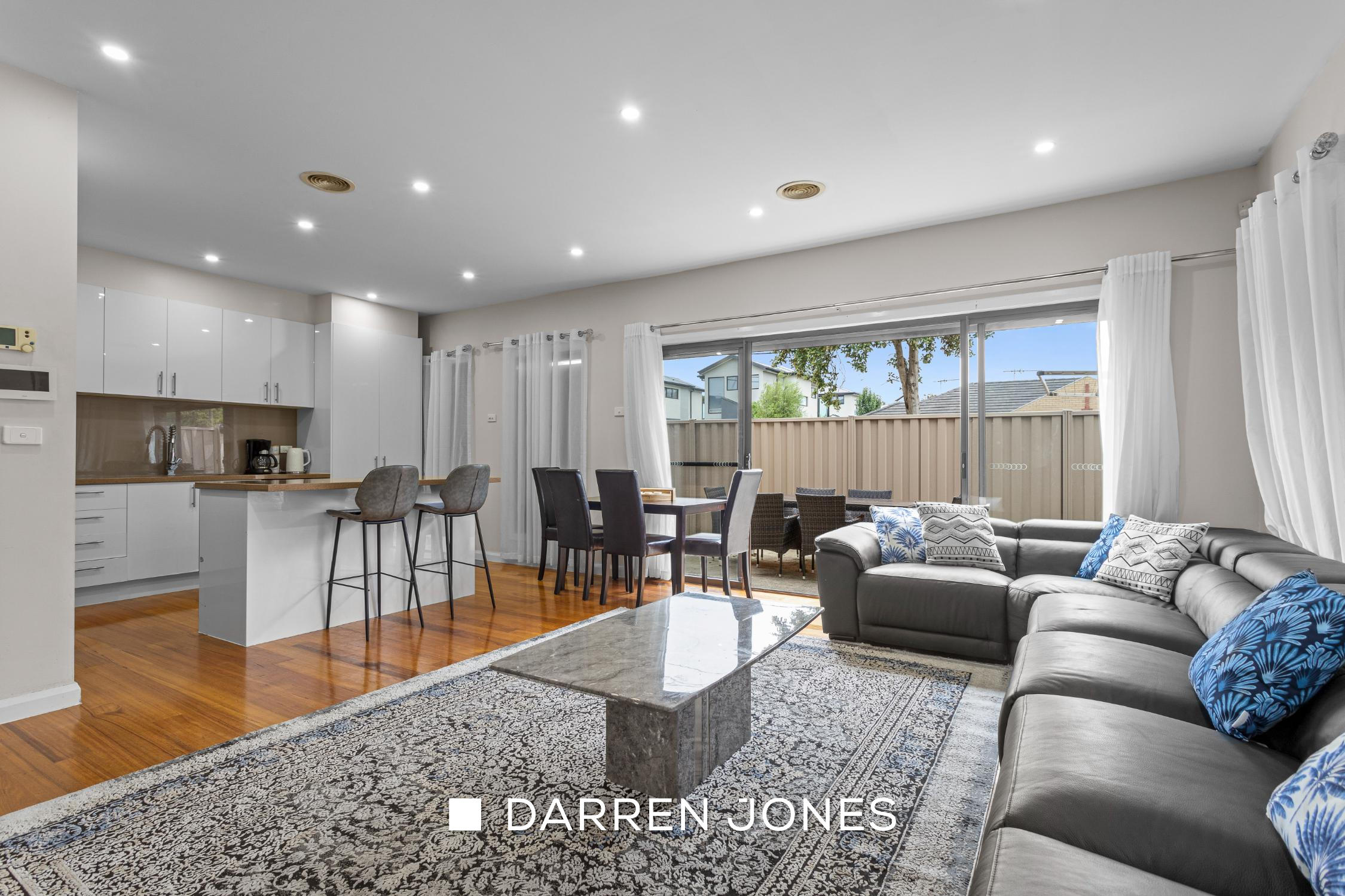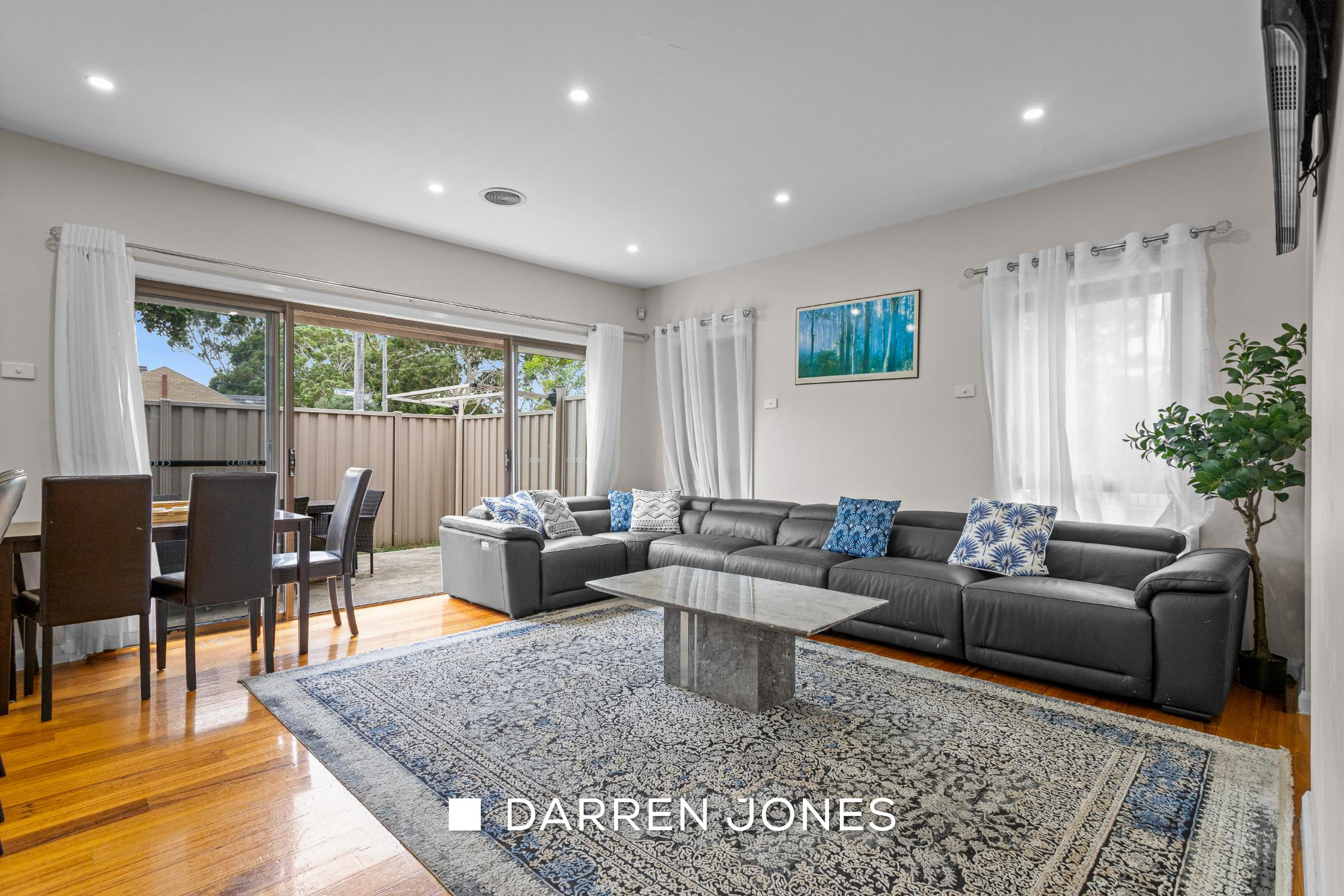At the heart of the home is a light-filled open plan living and dining area, complemented by stylish timber floorboards and a well-appointed kitchen, creating the perfect space for both everyday living and entertaining.