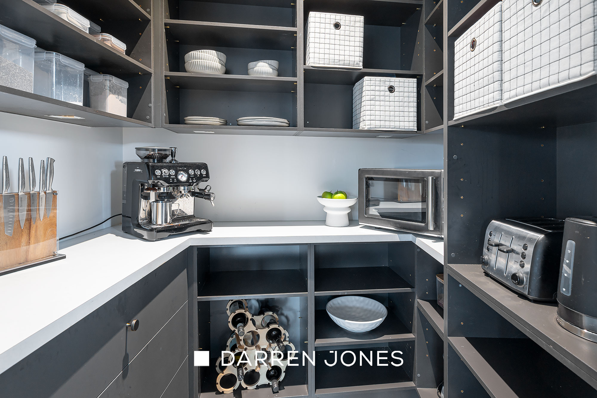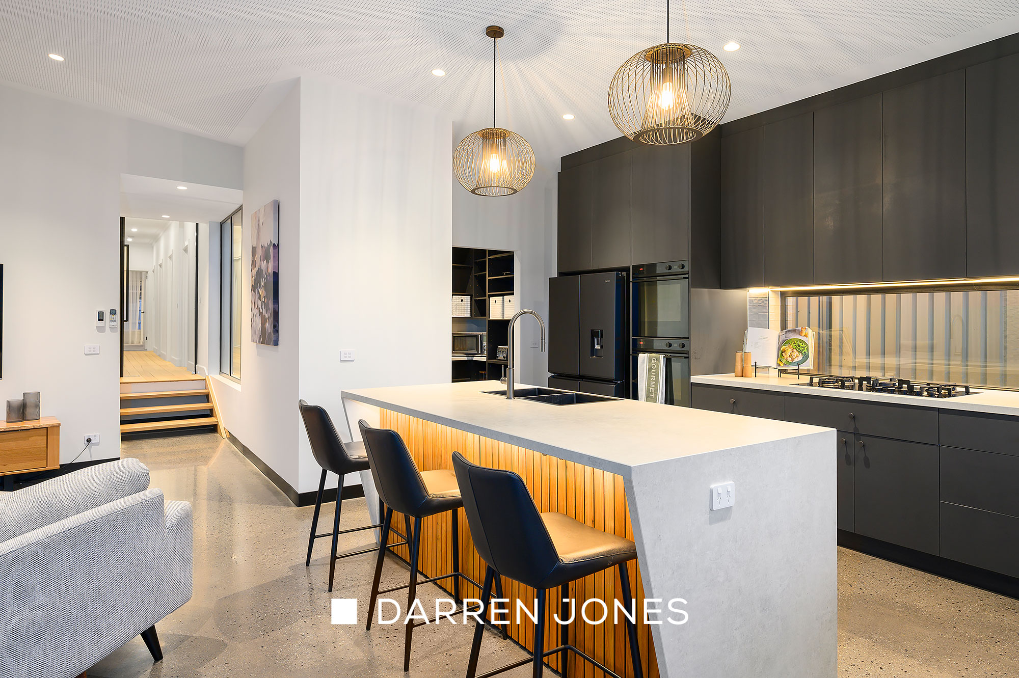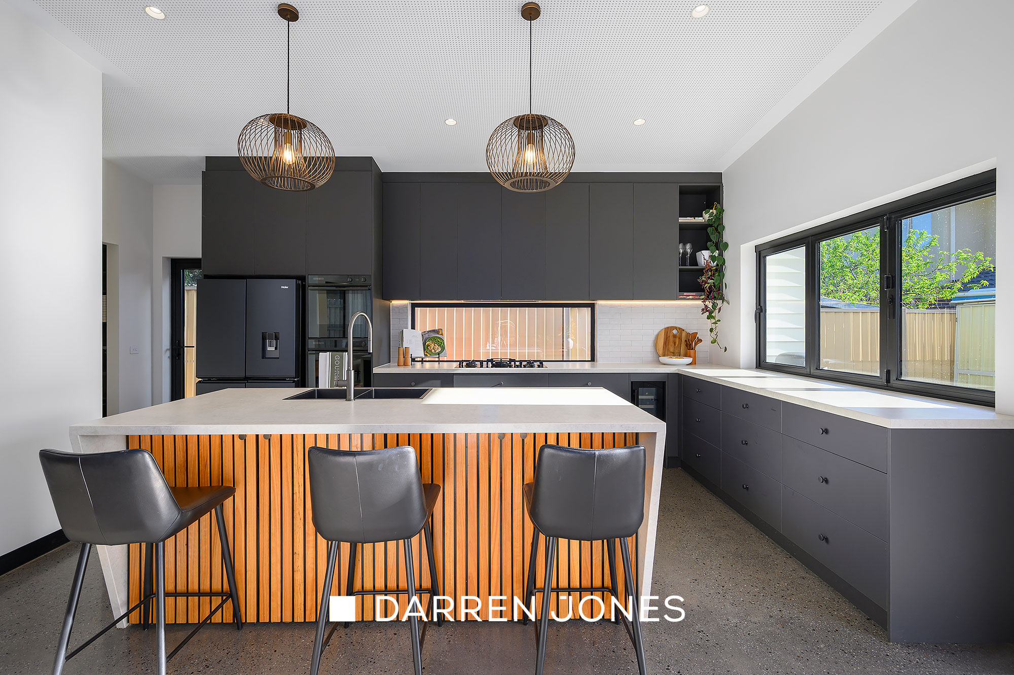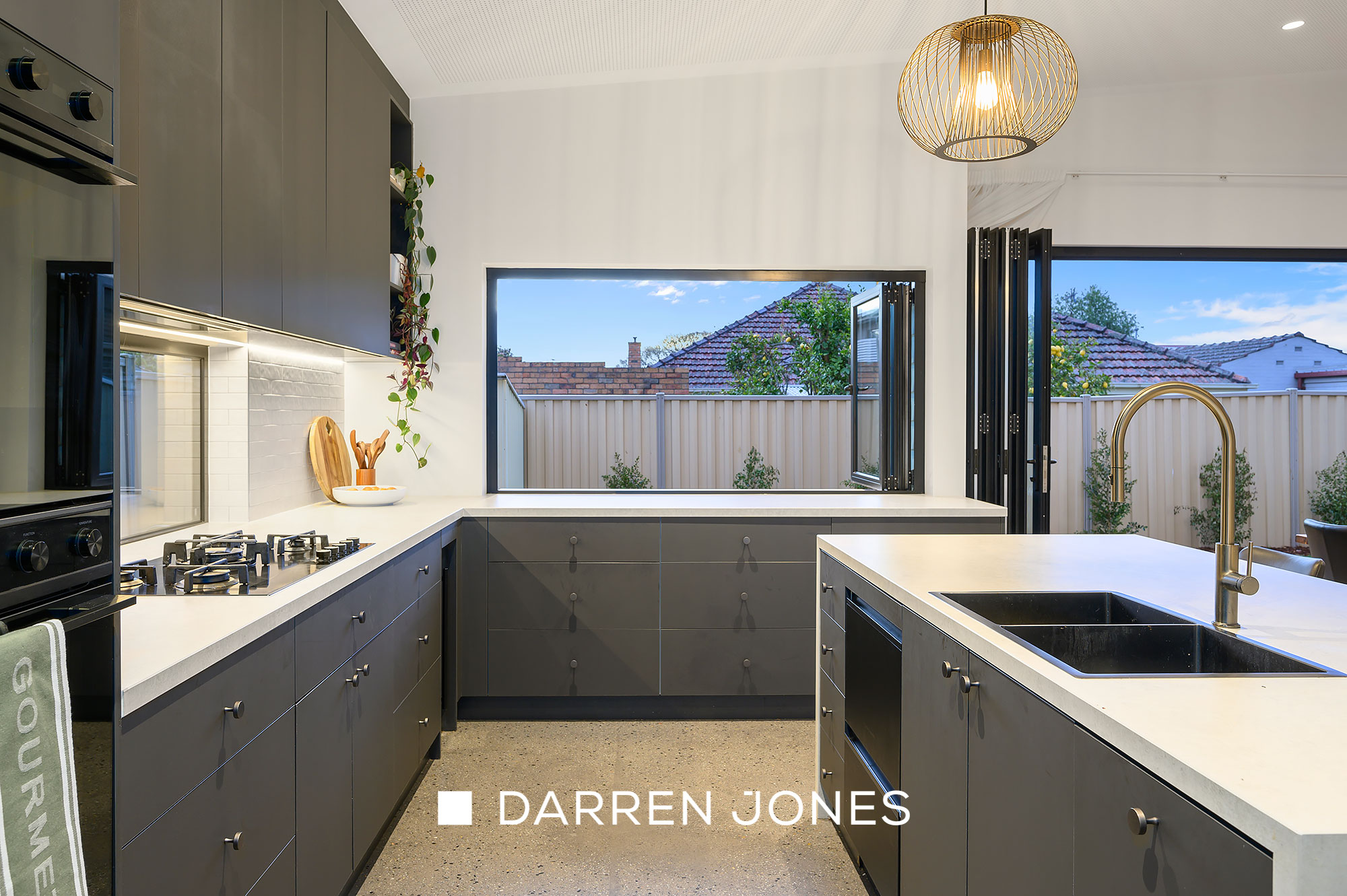~ Kitchen with butler’s pantry and servery window to alfresco