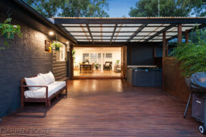 Boasting spacious living areas, exquisite alfresco spaces, a sparkling pool and a tranquil leafy outlook, this striking family home cleverly consolidates indoor and outdoor living and entertaining across two spacious levels. The kitchen introduces stone tops over glossy cabinetry that surrounds a 900mm stainless steel cooker, while the expansive living meals anchored by a wood fire heater stretches out through bi-folds to a tree-top deck complete with spa! This free-flowing link between indoors and out continues on the ground floor, where the retreat opens to an astro-turfed play area and down to a solar heated, salt chlorinated pool in decked surrounds and complemented by a Balinese inspired gazebo.