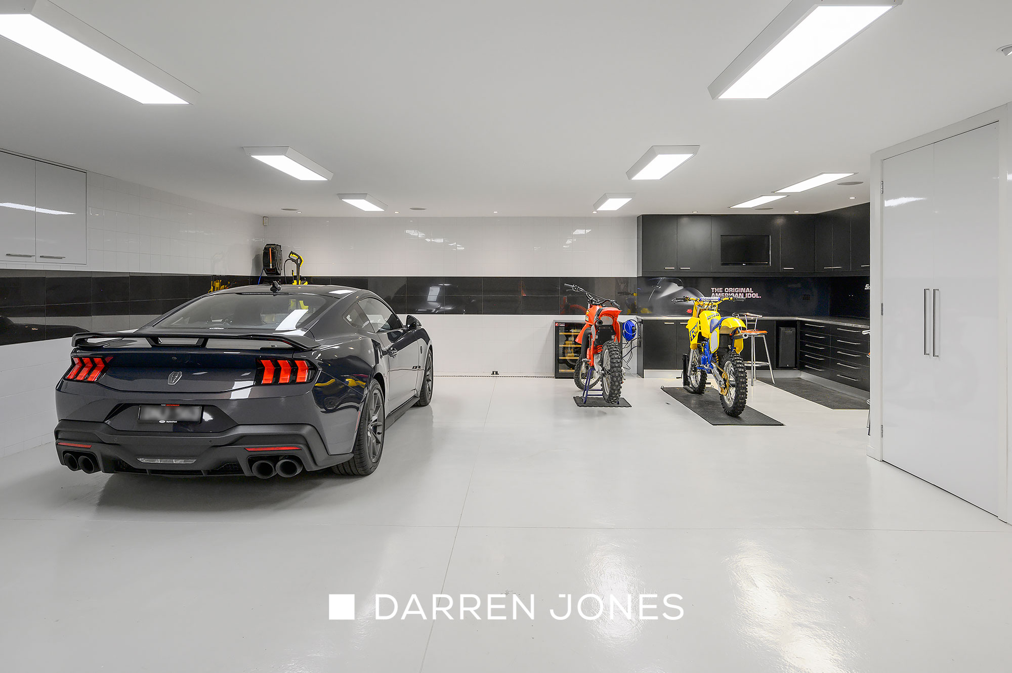 • Remote five-car garage with storage, fitted workshop and car wash bay